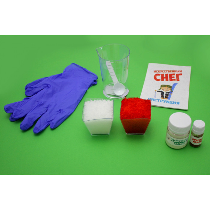 Развивающий набор "Искусственный снег" предназначен для демонстрации уникальных свойств полимера полиакрилата натрия и создания на его основе декоративного цветного искусственного снега.