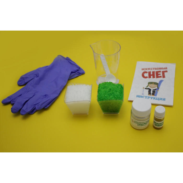 Развивающий набор "Искусственный снег" предназначен для демонстрации уникальных свойств полимера полиакрилата натрия и создания на его основе декоративного цветного искусственного снега.
