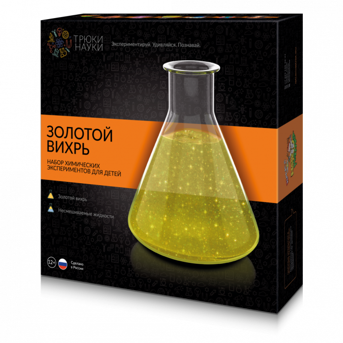Набор химических экспериментов для детей, в который входит 2 разных опыта, каждый из которых можно создавать многократно : "Золотой вихрь" перед Вами самая зрелищная из реакций обмена, в результате которой является выпадение золотистых кристаллов. "Несмешиваемые жидкости" если две жидкости нерастворимы одна в другой, то как бы их не смешивали друг с другом, они все равно образуют два отдельных слоя.