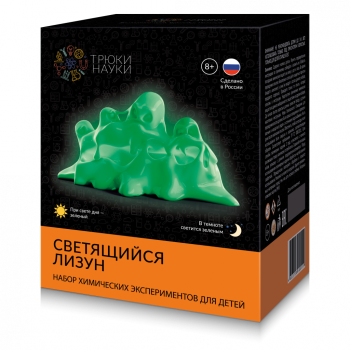 Набор химических экспериментов для детей: "Светящийся лизун" при свете дня - зеленый, в темноте светиться зеленым. Реагентов хватает на несколько исполнений.