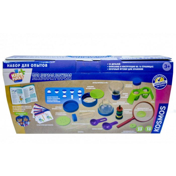 Дети старшего дошкольного и младшего школьного возраста любознательны от природы. Они стремятся познавать окружающий мир, экспериментируя, играя и наблюдая. Набор "Моя первая научная лаборатория" разработан в соответствии с современными принципами обучения, стимулирующими естественное любопытство ребенка.