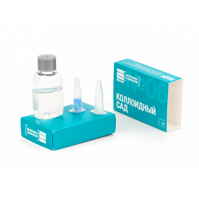 Долейте воду во флакон из набора, насыпьте внутрь содержимое двух пробирок и наблюдайте за происходящим: прямо на ваших глазах вырастает коллоидный сад из химических "водорослей".