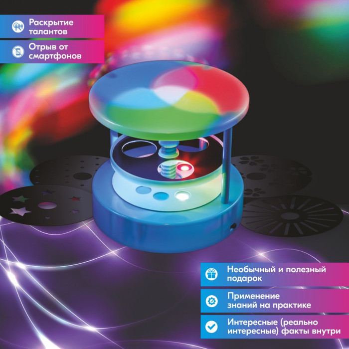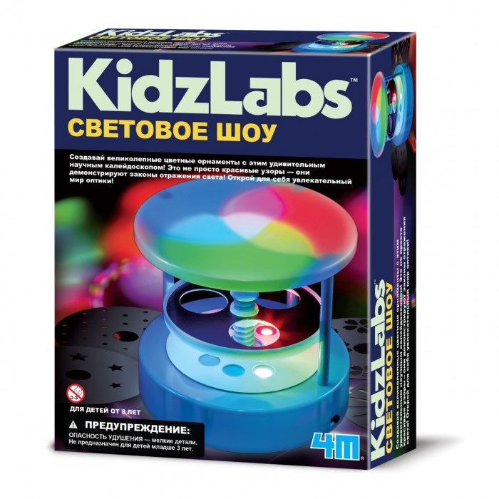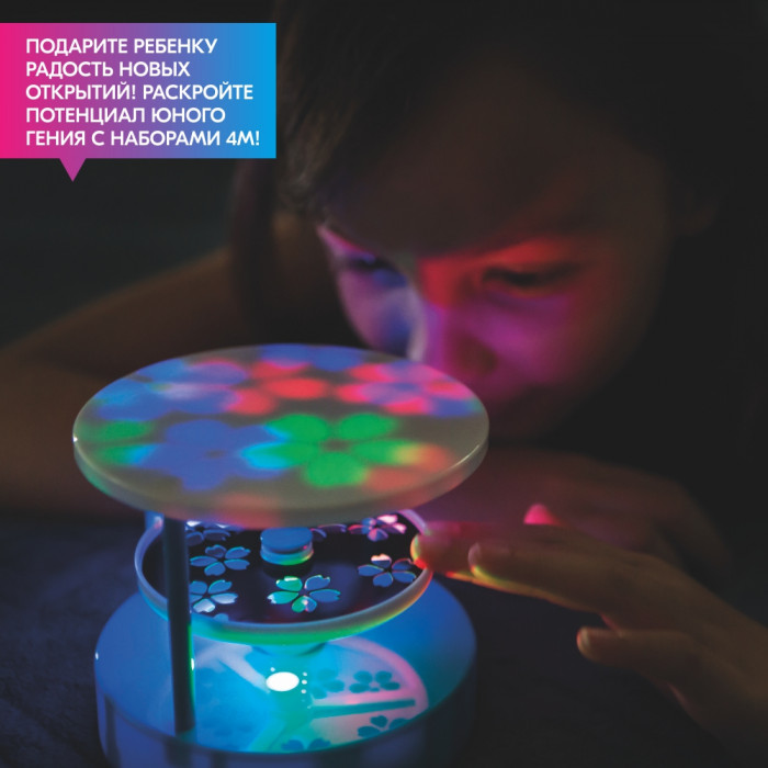 Создавайте великолепные световые шоу с научным калейдоскопом 4М. Это не просто красивые узоры — они демонстрируют законы отражения света. Откройте для себя увлекательный мир оптики!