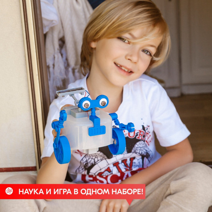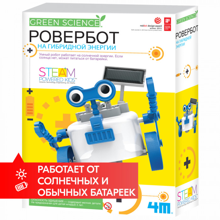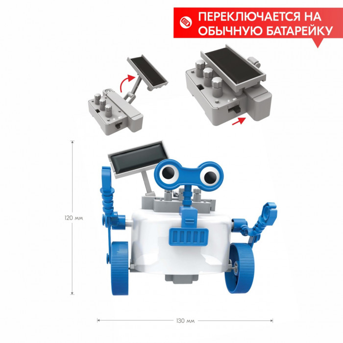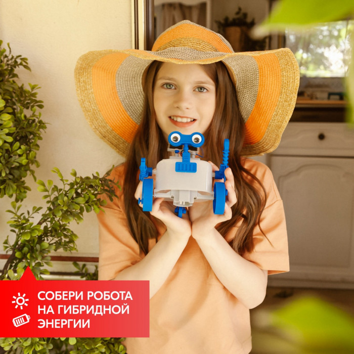 Гибридный ровербот резво мчится вперед, питаясь солнечной энергией. Если солнца нет, может питаться от обычной батарейки. Соберите его своими руками и узнайте, что такое гибридная система питания.