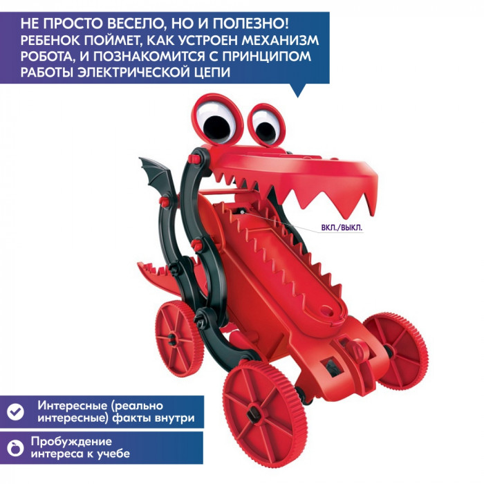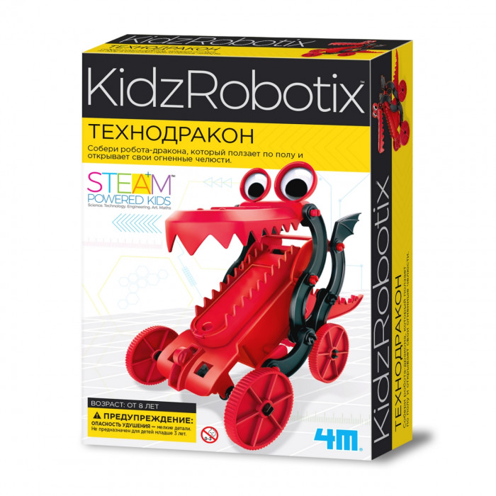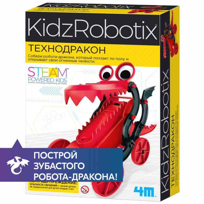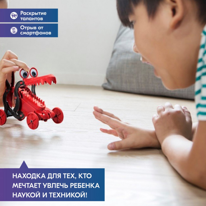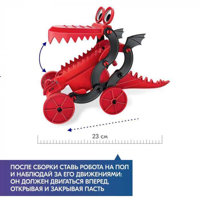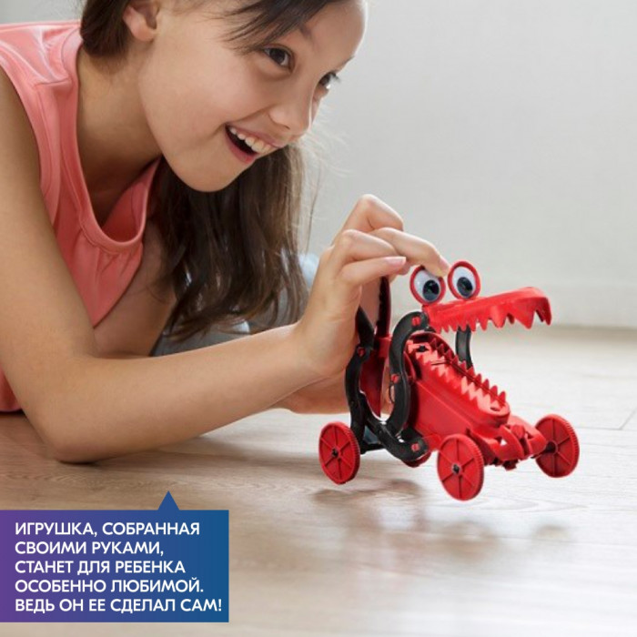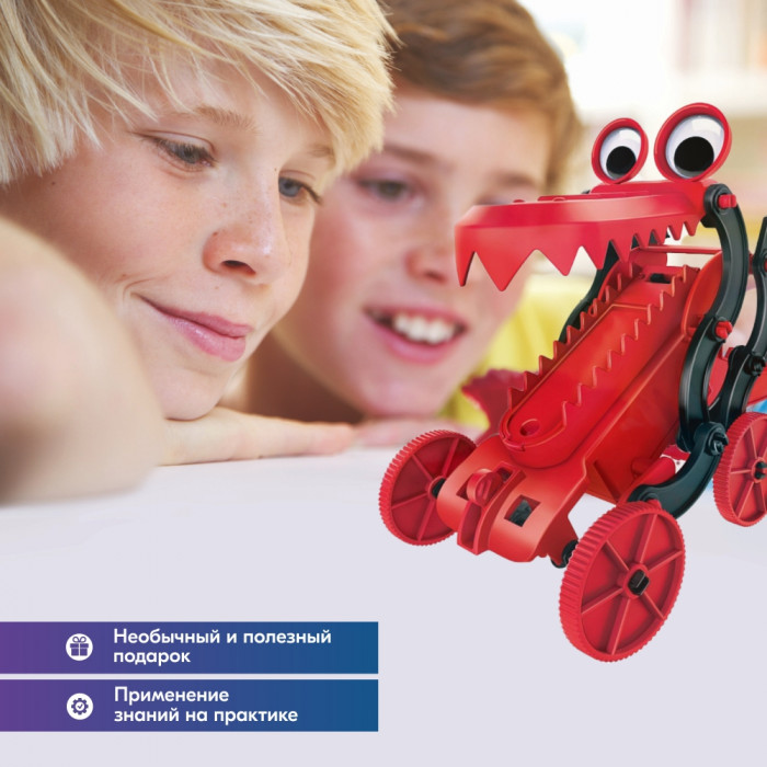 Соберите робота-дракона, который ползает по полу и открывает свои огненные челюсти. Полезный набор, который поможет не только увлечь игрой, но и изучить механизм работы игрушки.