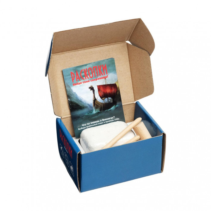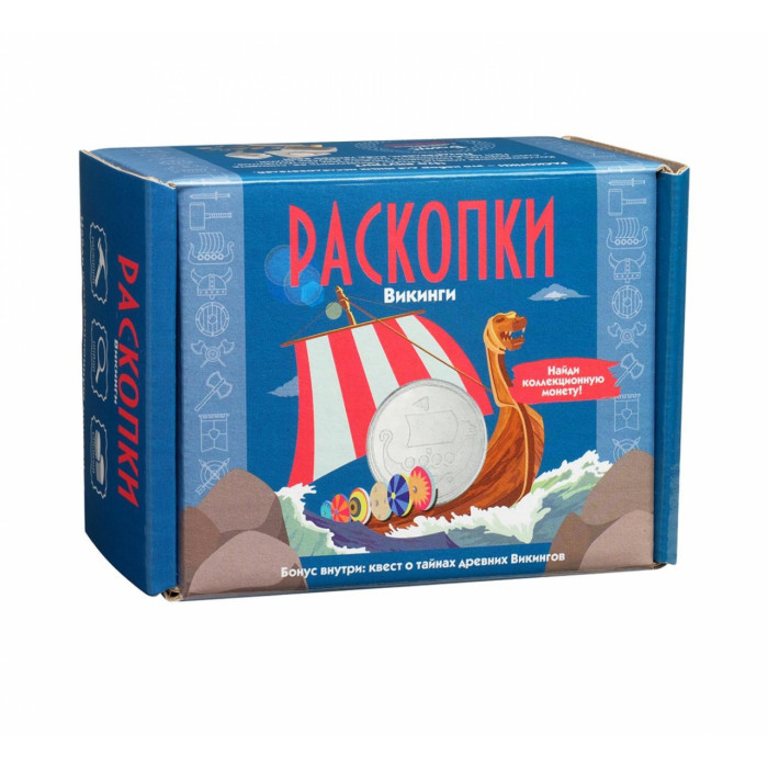 Ребенок увлекается необычными находками, секретами и познавательными играми? Подарите ему мини- приключение, которое запомнится надолго. В компактной коробке вас ждет кусок грунта, который можно раскопать, чтобы добраться до сокровищ - монет древних викингов. Ребенок сможет узнать что-то новое об истории и почувствовать себя в роли археолога.
