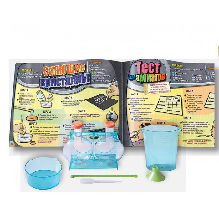Это самая настоящая научная лаборатория на дому. Оборудование, химикаты и научный журнал-инструкция.