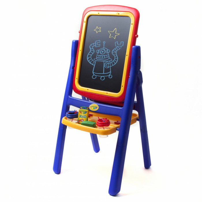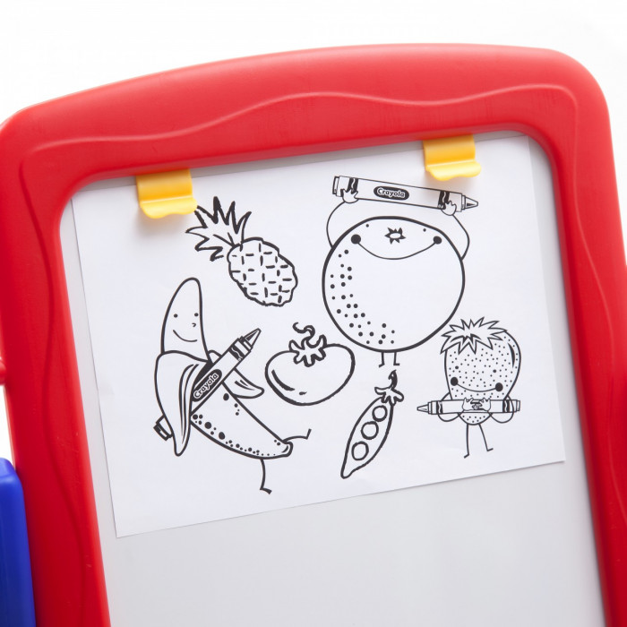 Двусторонний мольберт с магнитными цифрами и буквами Grow’n Up легко устанавливается и компактен в хранении. Доска может вращаться вокруг своей оси на 360 градусов. К мольберту крепится удобная полка с двумя подстаканниками для хранения фломастеров, мелков, маркеров, емкостей с водой и прочих принадлежностей для творчества ребенка.