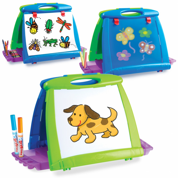 Она имеет легкий вес и удобную ручку для переноски. Предусмотрены 2 отделения для хранения предметов. Складная конструкция позволяет юным художникам брать ее с собой.