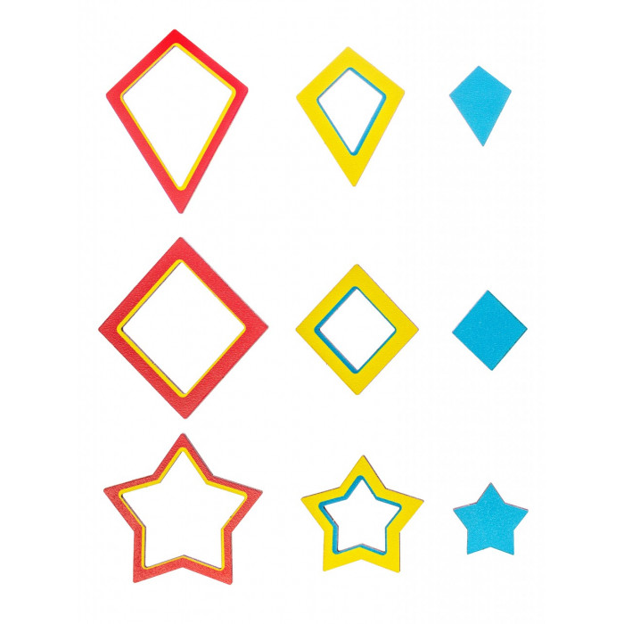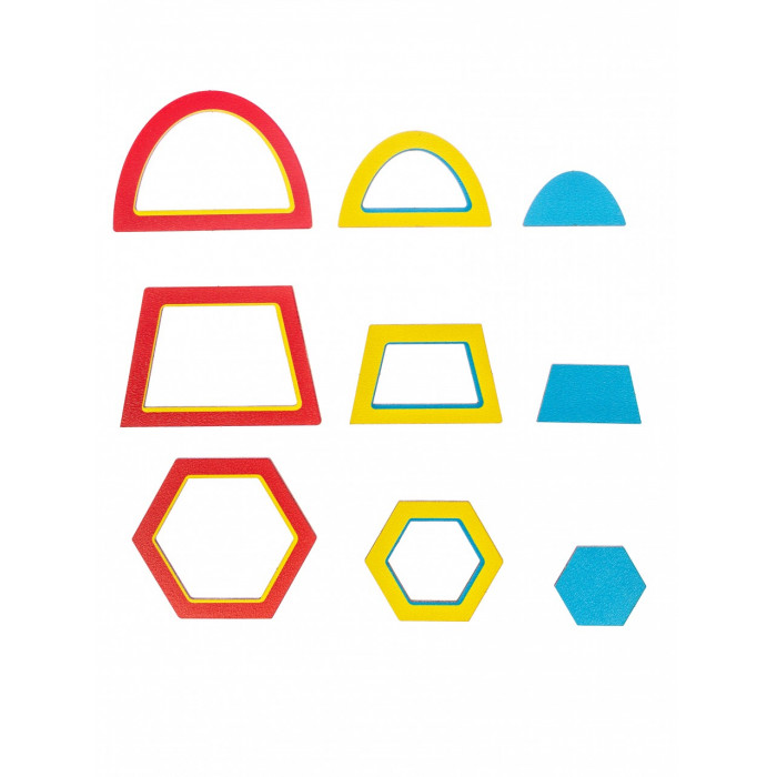 Рамки-вкладыши помогут изучить геометрические фигуры, размер (большой-маленький), разовьют глазомер и координацию движений рук. Рамки можно обводить на бумаге и раскрашивать, составляя различные узоры и орнаменты.