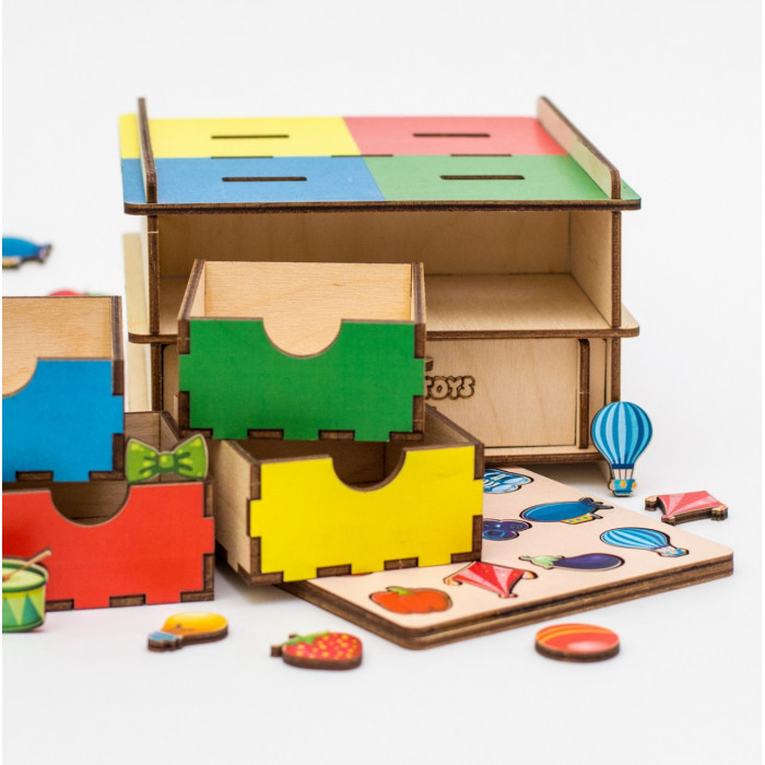 Комодик — удивительная развивающая игрушка, которая объединяет сразу несколько интересных игр и занятий: вкладыши, сортировка, счет и сравнение предметов.
