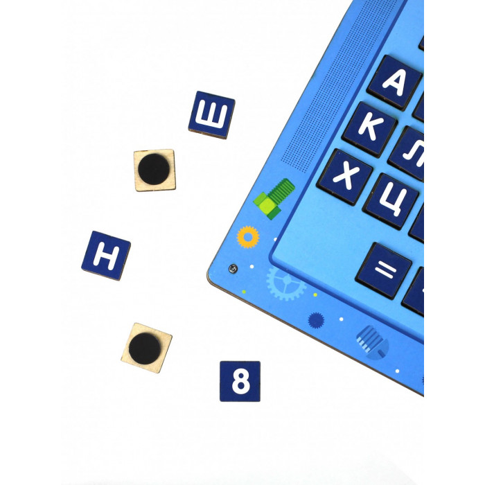 Игрушка представляет собой конструкцию в виде переносного персонального компьютера, имеет дисплей - магнитную доску и клавиатуру с вкладышами-кнопками.