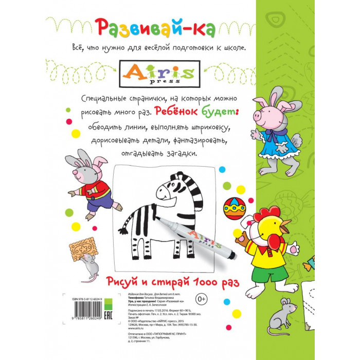 Пропись АЙРИС-ПРЕСС 60997 Рисуй и стирай. 6+ Ура, у нас праздник! (с фломастером)