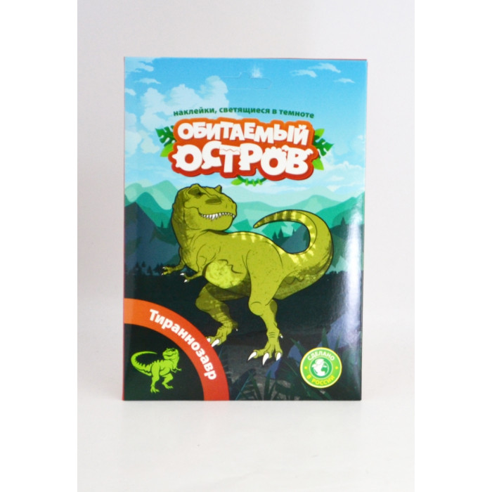 Набор включает в себя наклейку динозавра ТИРРАНОЗАВР размером 110*135 мм, светящегося в темноте, цветную фигурку данного динозавра на специальной подставке и познавательную информацию о динозавре.