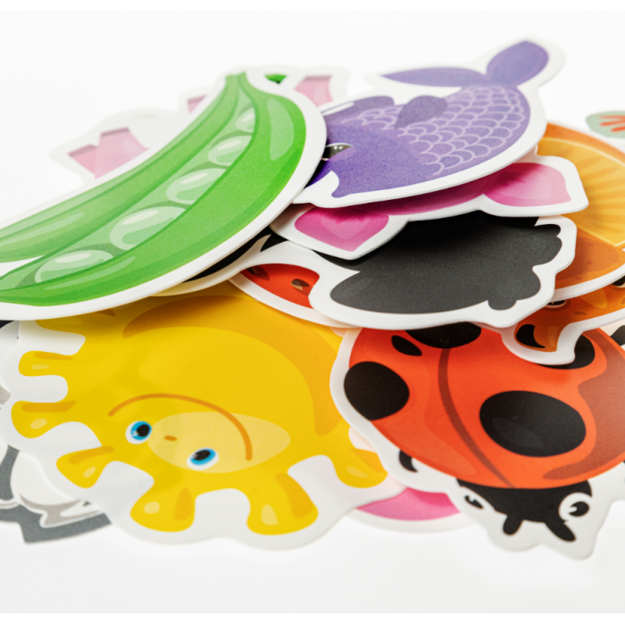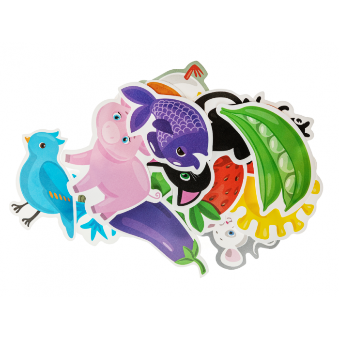Как играть? Объекты крепятся к карточкам с помощью всем известных липучек "велькро". Ребенок должен найти, какие объекты прикрепить к определенной карточке, и точно соединить липучки, чтобы фигурка крепко держалась на картинке.