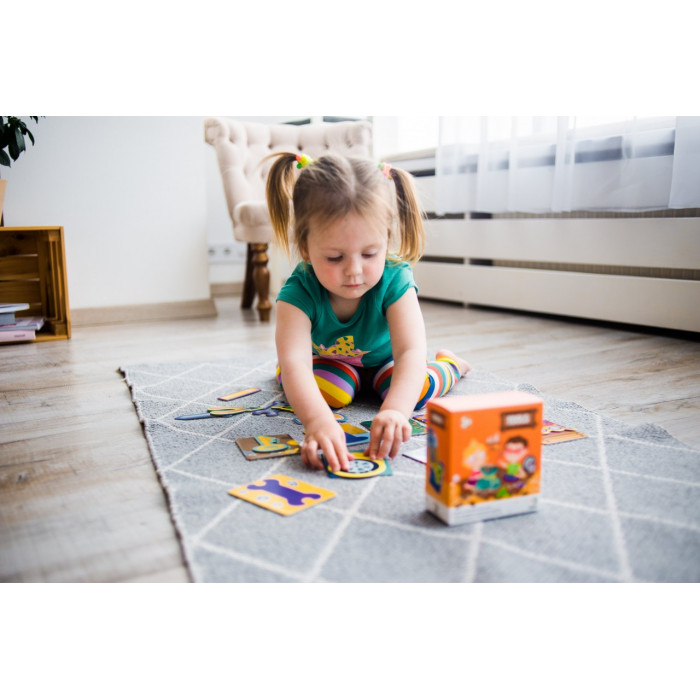 Карточки-планшетки выкладывают на стол. Ребенок закрытыми глазами вынимает из коробки фигурку, на ощупь отгадывает, что в руках. Если угадал, то забирает карточку-планшетку. Теперь очередь следующего игрока. Побеждает тот, кто больше всех соберет карточек с контурами.
