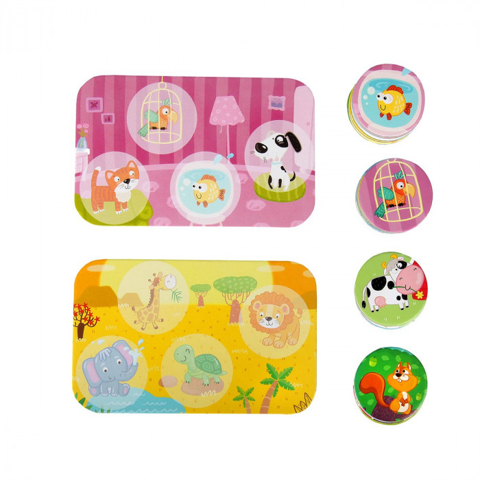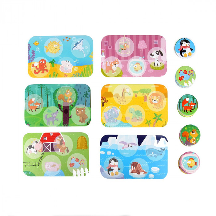 Всего в комплекте игры имеется 24 круглые фишки. Ведущему необходимо по очереди доставать фишки и называть животных, которые на них изображены. Ее забирает тот, чье игровое поле является местом обитания для этого животного. К примеру, фишка с осьминогом попадает на игровое поле с изображением моря, а корова — на игровое поле с фермой. Побеждает тот, кто первый соберет всех животных на своем игровом поле.