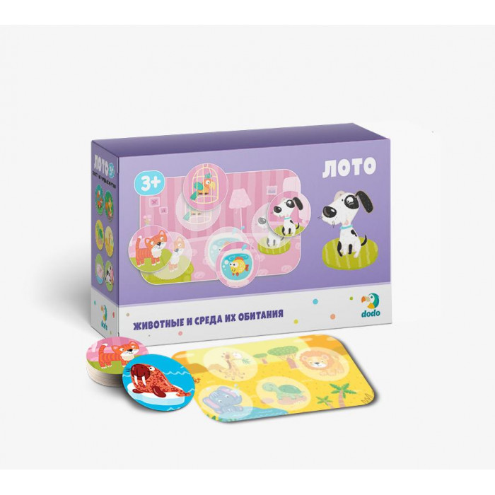 Лото "Животные и среда их обитания" представляет собой 6 игровых полей. На каждом из них изображены группы животных, проживающих на одной территории. Здесь есть игровое поле с морем, с фермой, с лесом и т. д. На каждом нарисовано по четыре животных. Для большего удобства здесь же обозначены места для фишек с их изображением.