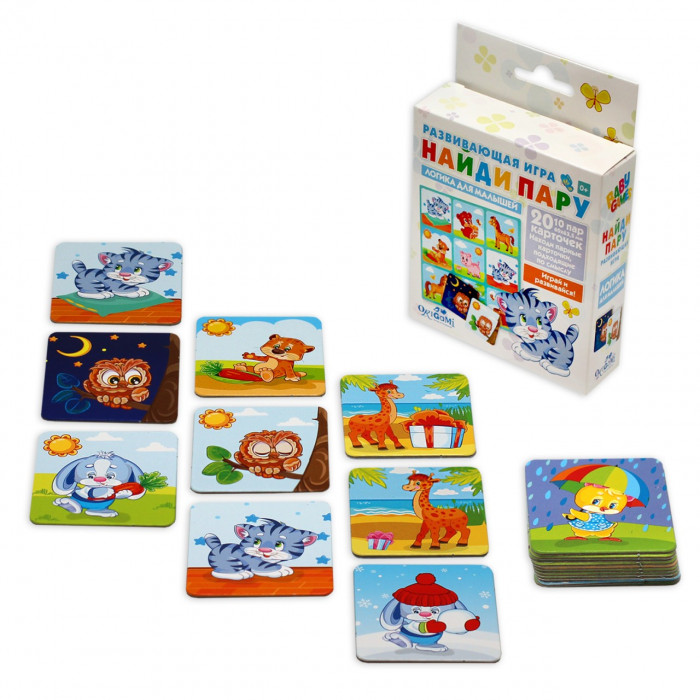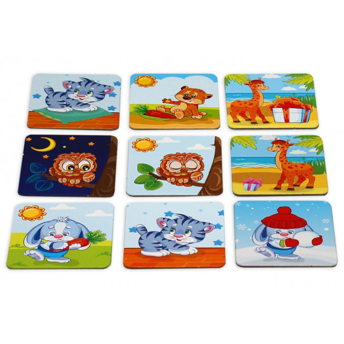 Настольная игра "Найди пару" с любимыми персонажами в игровой форме научит вашего малыша видеть разницу между противоположностями - чистый и грязный, внутри и снаружи, тепло и холодно.