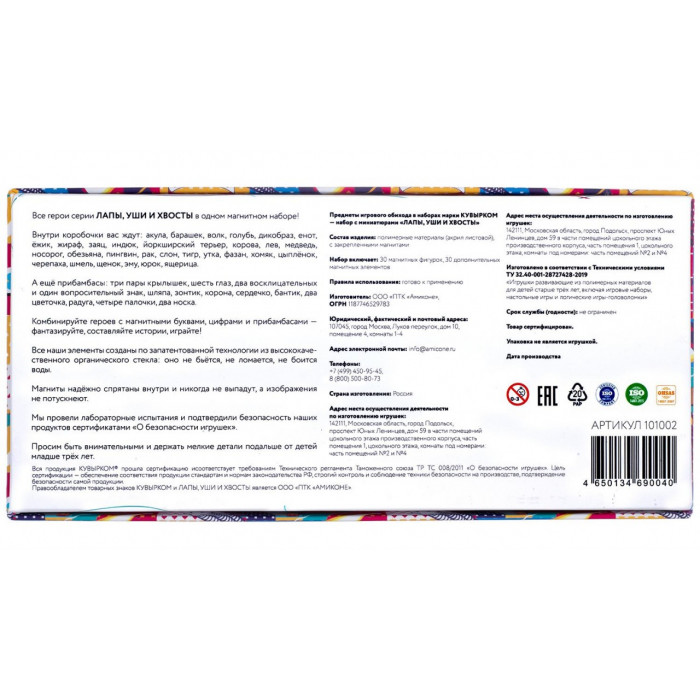 Набор "Всякая всячина" из серии "Лапы, уши и хвосты" состоит из 60 магнитных элементов.