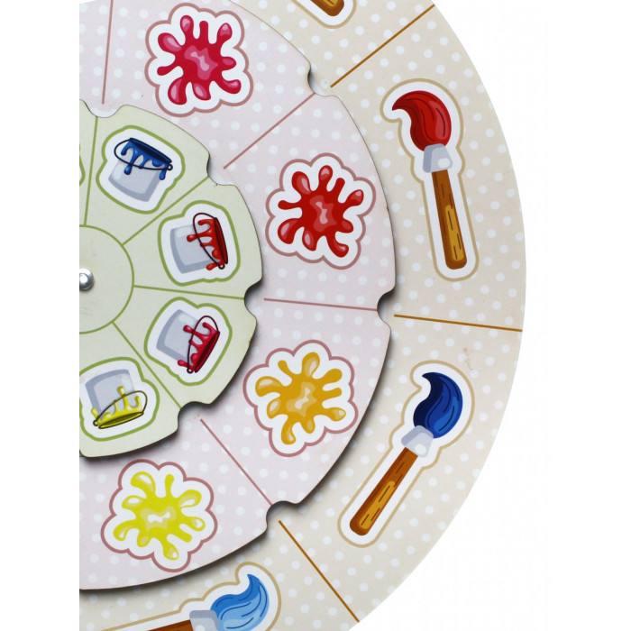 Игра состоит из трех кругов разного диаметра, соединенных в центре металлической клепкой. Каждый круг подвижен и разделен на сектора.