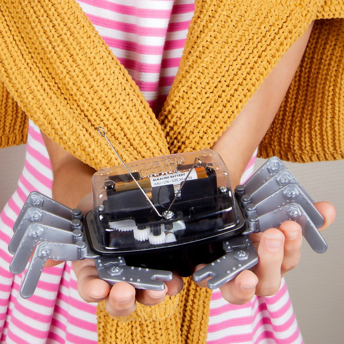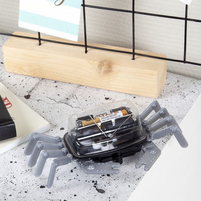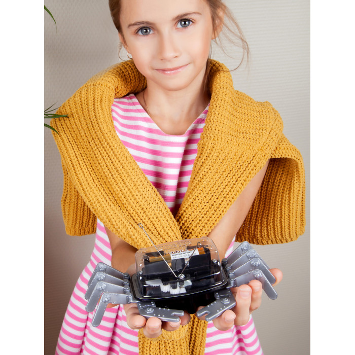 Забавная игрушка умеет ловко перемещаться по столу, обходя края и не падая. Как ей это удается, вы узнаете из научно-познавательного конструктора "Настольный робокраб".