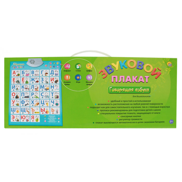 Представляем Вашему вниманию уникальную новинку — развивающие звуковые плакаты, которые содержат стихотворения, занимательные и поучительные рассказы о животных, звуки, издаваемые ими, а также позволяют в игровой форме выучить алфавит, а затем проверить, насколько хорошо были усвоены полученные знания. Плакаты просты и удобны в использовании, влагостойкие, подходят как для самостоятельного изучения, так и при помощи взрослых, располагаются на любой ровной поверхности, содержат кнопки регулятора громкости, а также режим автоматического выключения в целях экономии батареек и многое другое. Развивайтесь, играя!!!