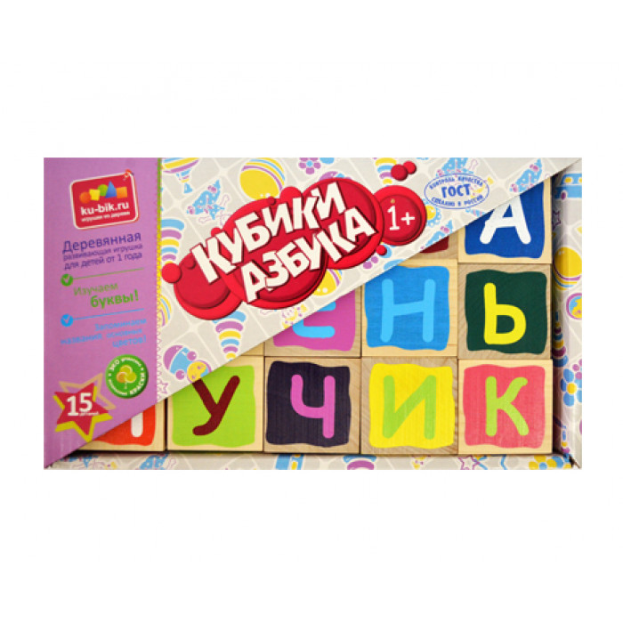 Кубики ALATOYS КБА1502 Кубики "Азбука" деревянные окрашенные 15 шт.