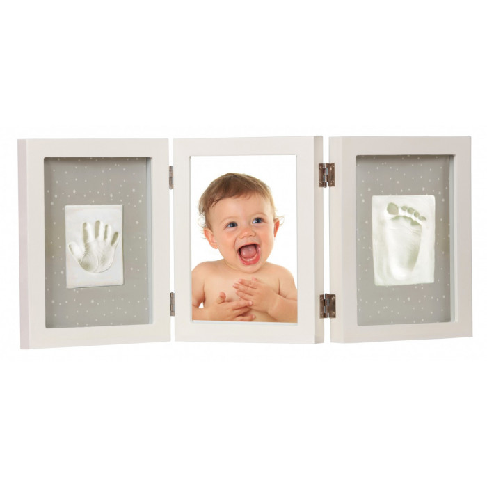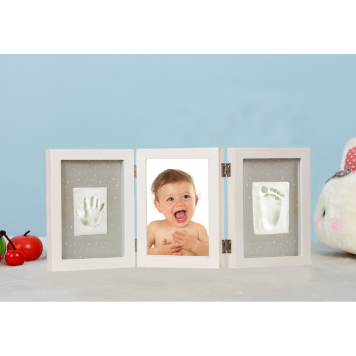 Крохотные отпечатки ножки и ручки малыша, а также его фото, помещенные в тройную рамочку, вызывают ни с чем не сравнимое чувство умиления при только взгляде на этот чудесный сувенир.