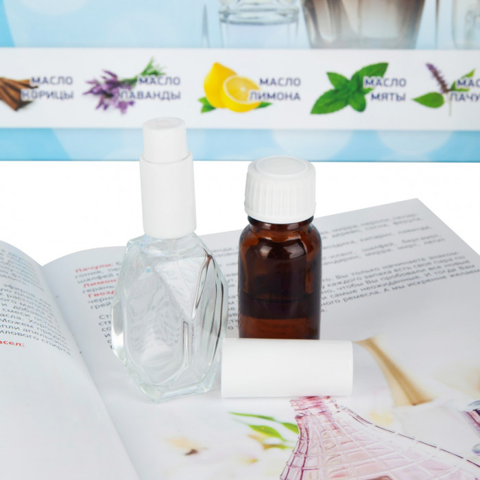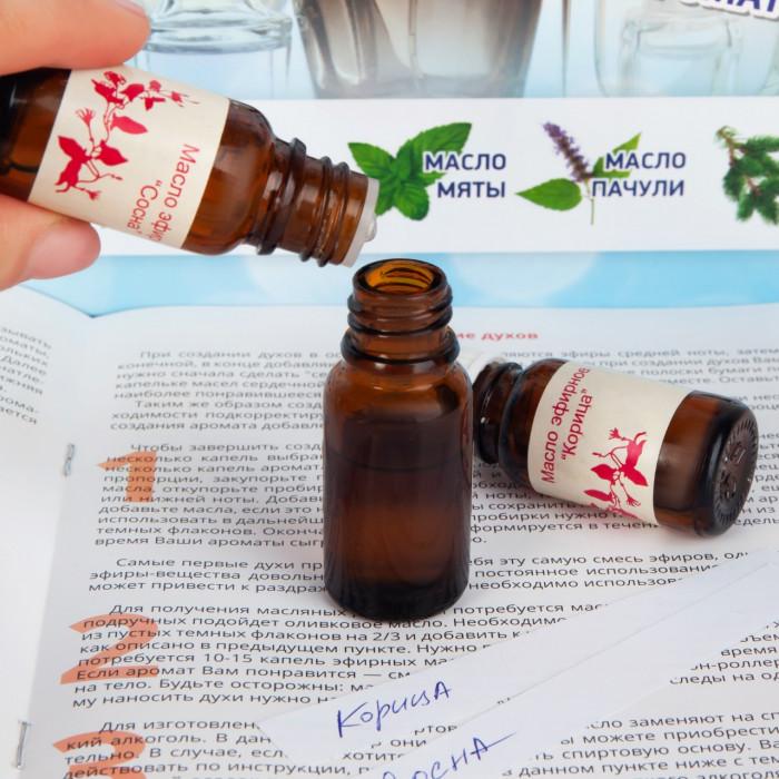 Флакончики с эфирными маслами (апельсина, гвоздики, корицы, лаванды, лимона, мяты, пачули и сосны)