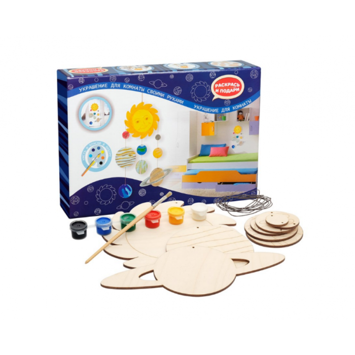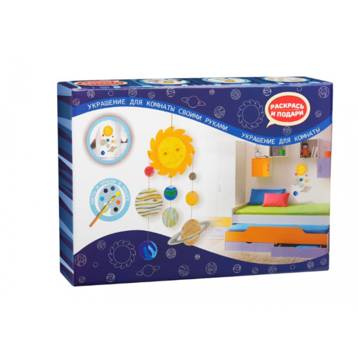 С помощью этого набора для творчества из серии "Создай украшение для комнаты" вы сделаете поделку, которая будет напоминать вам о далеких звездах и фантастических мирах. А еще с помощью этого украшения можно запомнить планеты Солнечной системы! В наборе вы найдете все необходимые материалы для создания поделки.