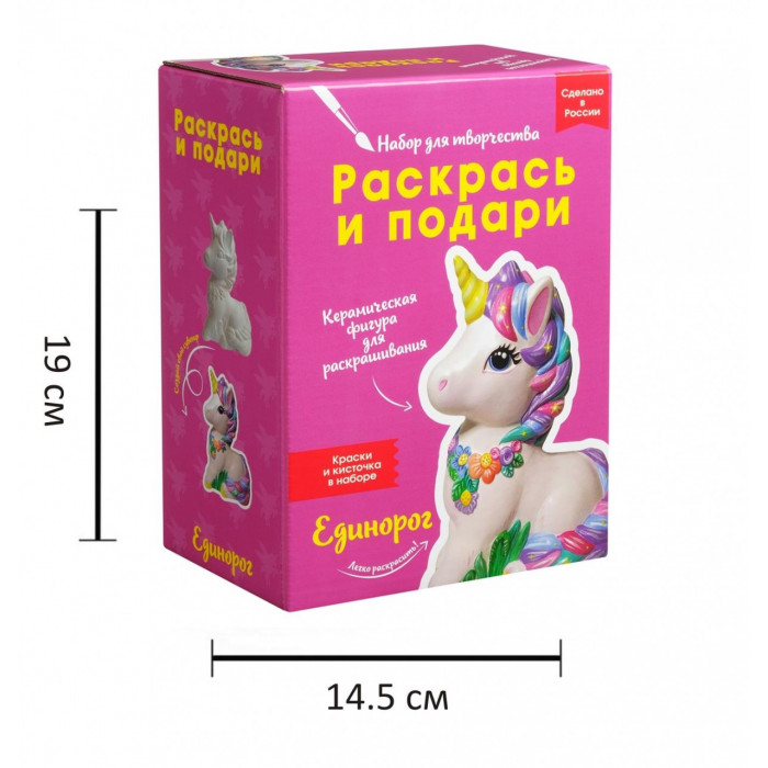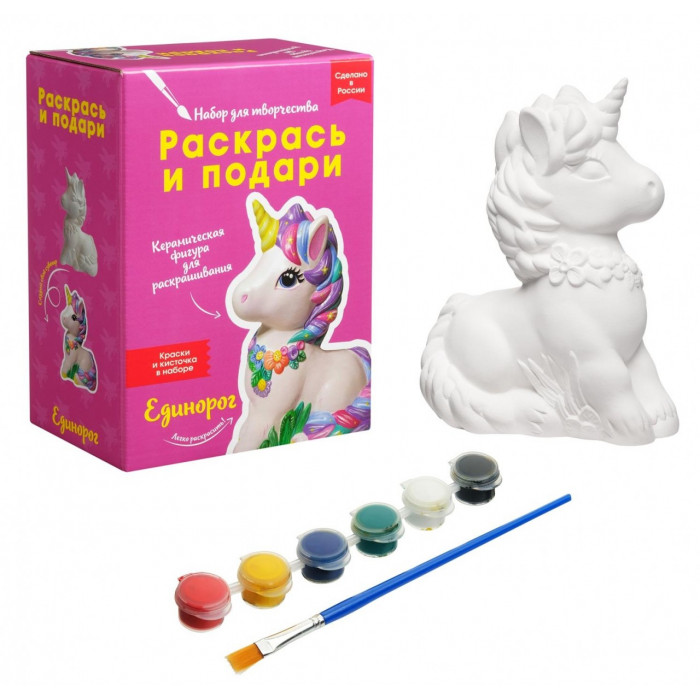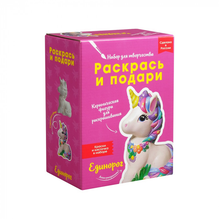 Набор для творчества "Единорог" - замечательный подарок для творческого человека! В красочной коробке большая фигура из белоснежной керамики, палетка красок в удобных баночках и кисточка. Полноценный готовый набор, чтобы своими руками создать великолепную декоративную фигуру.
