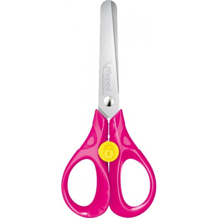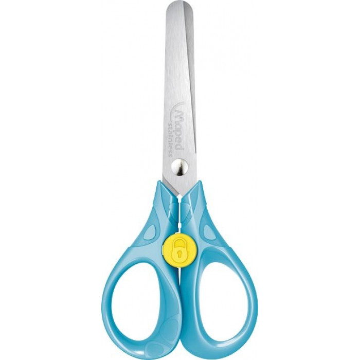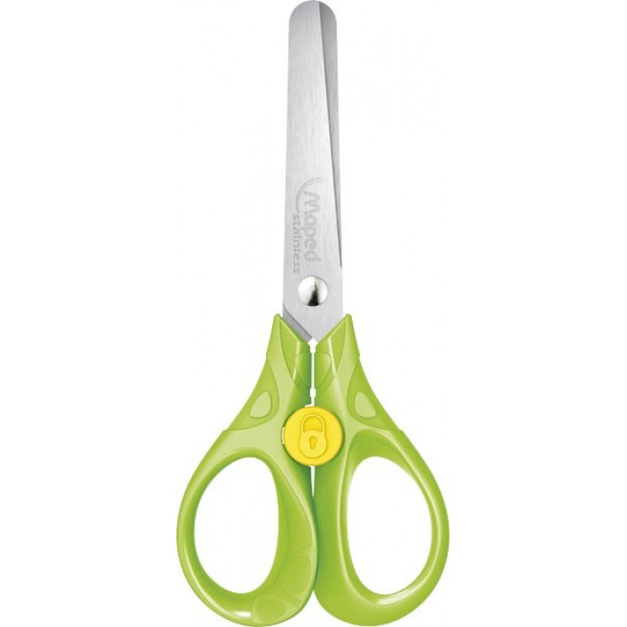 Школьные ножницы оснащены уникальной системой блокировки лезвий для повышения безопасности. Эргономичные кольца разработаны специально для детской руки.