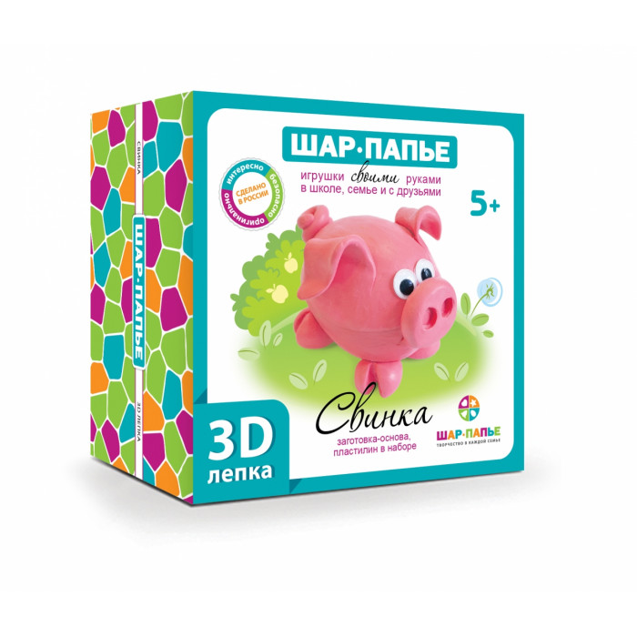"Свинка 3D лепка" — это набор из новой серии ШАР-ПАПЬЕ с пластилином. Он включает в себя все необходимое для создания оригинальной игрушки: бумажную заготовку, пластилин и забавные "бегающие" глазки. Если процесс объемной лепки увлек маленького творца, в компанию к пластилиновой свинке он может сделать кота, мишку и зайку из этой же серии. Получится целый зоопарк!