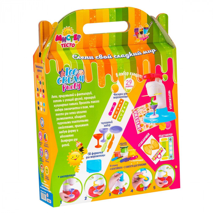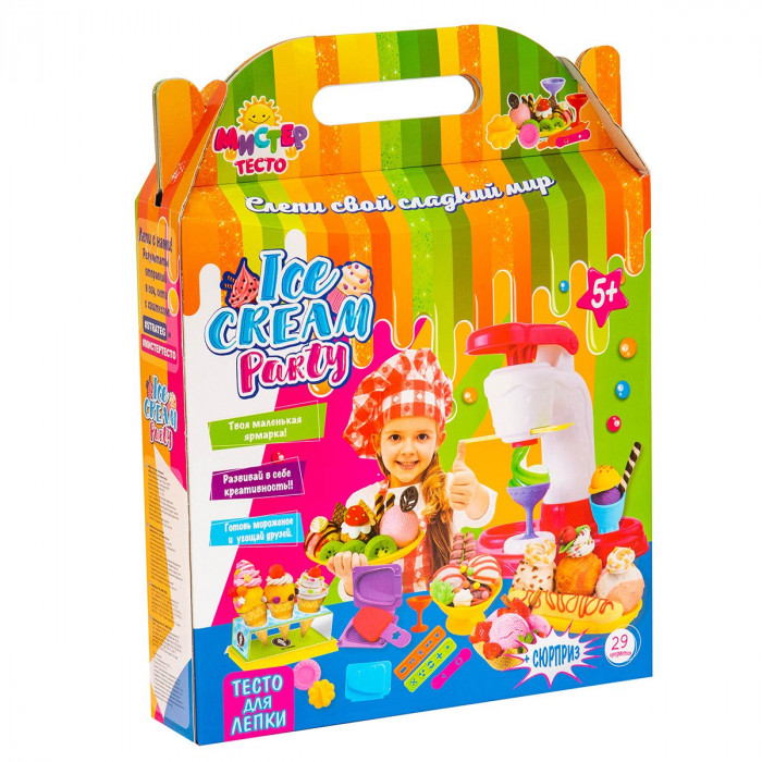 Сладкие пончики, мороженое, вафли и печенье — кто из детишек не любит сладости? Большой набор "Мистер Тесто Ice cream party" (71208) подарит ребенку возможность ощутить себя кондитером и продавцом на ярмарке сладких товаров! Это настоящая кондитерская в минитаюре, со всеми атрибутами "сладкого производства".