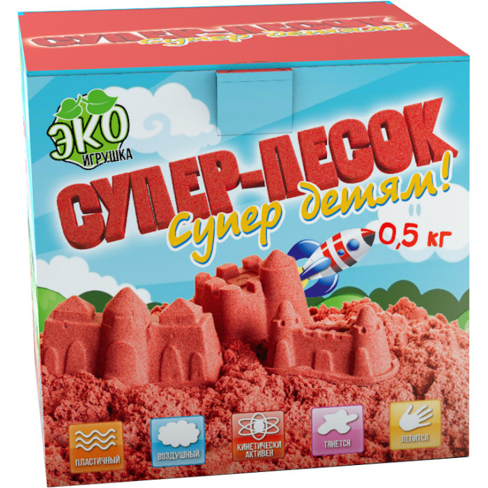 "Супер-песок" похож на влажный морской песок, при этом он сыпучий и пластичный, он "течет" сквозь пальцы и позволят лепить объемные фигуры. Он приятен на ощупь, абсолютно нетоксичен и не вызывает аллергии. Бактерии в нем не живут, поэтому этот песок безопасен для детей.