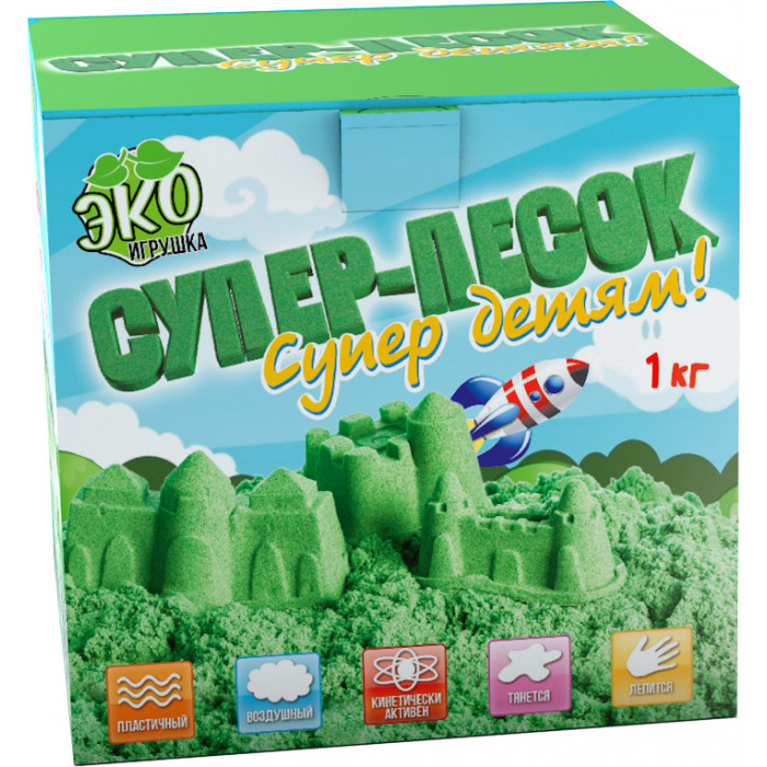 "Супер-песок" похож на влажный морской песок, при этом он сыпучий и пластичный, он "течет" сквозь пальцы и позволят лепить объемные фигуры. Он приятен на ощупь, абсолютно нетоксичен и не вызывает аллергии. Бактерии в нем не живут, поэтому этот песок безопасен для детей.