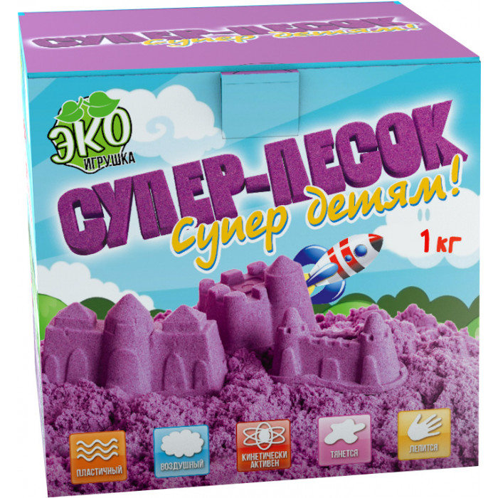 "Супер-песок" похож на влажный морской песок, при этом он сыпучий и пластичный, он "течет" сквозь пальцы и позволят лепить объемные фигуры. Он приятен на ощупь, абсолютно нетоксичен и не вызывает аллергии. Бактерии в нем не живут, поэтому этот песок безопасен для детей.