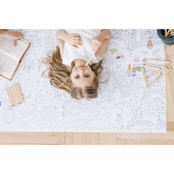 Расстелите плакат на полу или повесьте на стену, предложите ребенку на выбор – карандаши, краски или фломастеры. Дайте свободу детскому творчеству!
