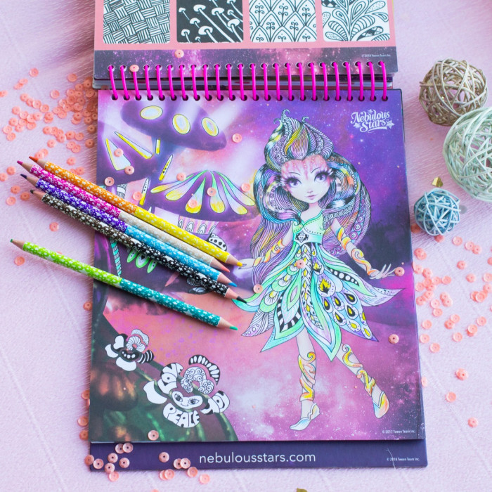 Отправляйся в увлекательное путешествие по бесконечной галактике вместе с девочками-звездочками Nebulous Stars! Галактика Nebulous Stars - это сказочный мир творчества и волшебства! Девочки готовы приоткрыть завесу тайны и раскрыть секреты космической силы и магии, проводить тебя в мир добра, красоты и положительных эмоций! Креативный Скутчбук - это альбомчик, предлагающий широкий спектр для творчества по превращению эскиза в готовую картину! Создавай свой собственный дизайн. Используя теорию цвета добавь картине красок! Нанеси восхитительные текстурные узоры, с помощью объемного трафарета. Фантазируй! Украшай наклейками! В наборе: скетчбук, 5 двухсторонних карандашей 10 цветов, более 80 трафаретов, более 300 стикеров, история звезды Небулии.