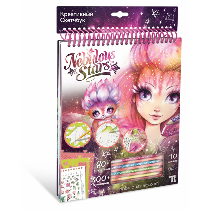 Отправляйся в увлекательное путешествие по бесконечной галактике вместе с девочками-звездочками Nebulous Stars! Галактика Nebulous Stars - это сказочный мир творчества и волшебства! Девочки готовы приоткрыть завесу тайны и раскрыть секреты космической силы и магии, проводить тебя в мир добра, красоты и положительных эмоций! Креативный Скутчбук - это альбомчик, предлагающий широкий спектр для творчества по превращению эскиза в готовую картину! Создавай свой собственный дизайн. Используя теорию цвета добавь картине красок! Нанеси восхитительные текстурные узоры, с помощью объемного трафарета. Фантазируй! Украшай наклейками! В наборе: скетчбук, 5 двухсторонних карандашей 10 цветов, более 80 трафаретов, более 300 стикеров, история звезды Петулии.