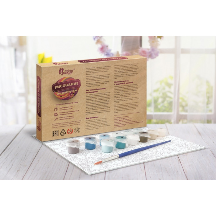В наборе есть все, чтобы сразу приступить к рисованию. Чтобы получилось настоящее произведение искусства, ребенку нужно раскрасить пронумерованные сектора холста приложенными к набору красками. А для этого придется проявить внимательность, усидчивость и аккуратность.