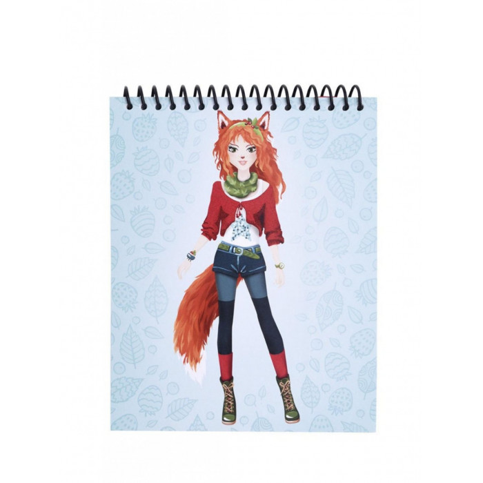 В блокноте множество эскизов, которые можно раскрасить карандашами, дополнить элементами одежды с помощью трафаретов и украсить аксессуарами-стикерами.