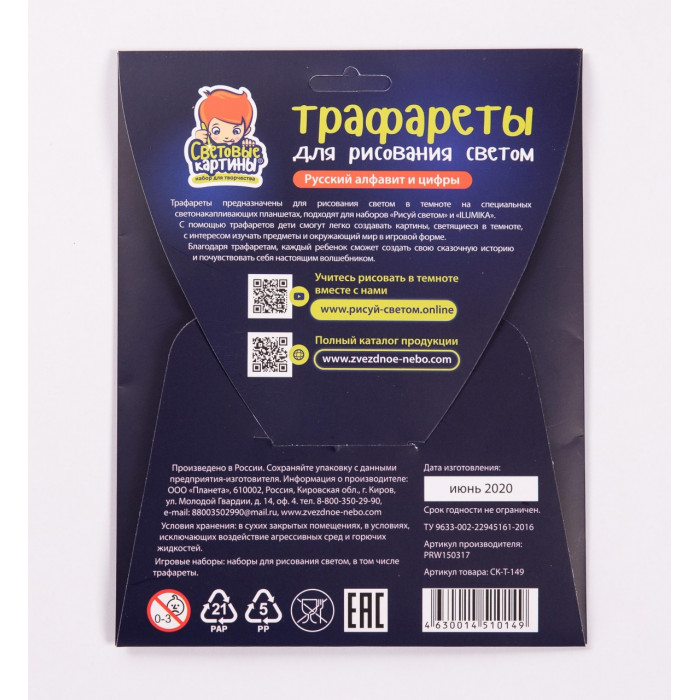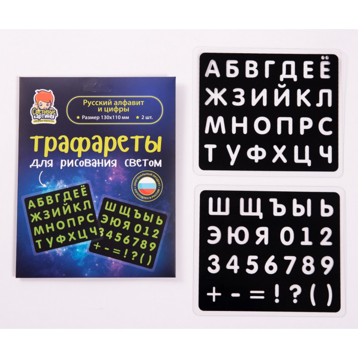 Набор СВЕТОВЫЕ КАРТИНЫ трафаретов Русский алфавит и цифры 149