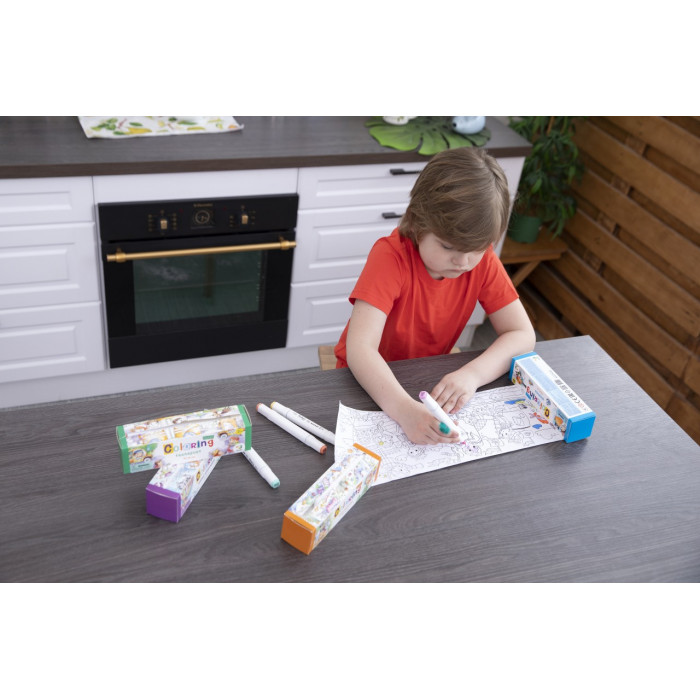 Внутри каждой коробки - раскраска размером 70x16 см, которую удобно доставать через прорезь на упаковке.