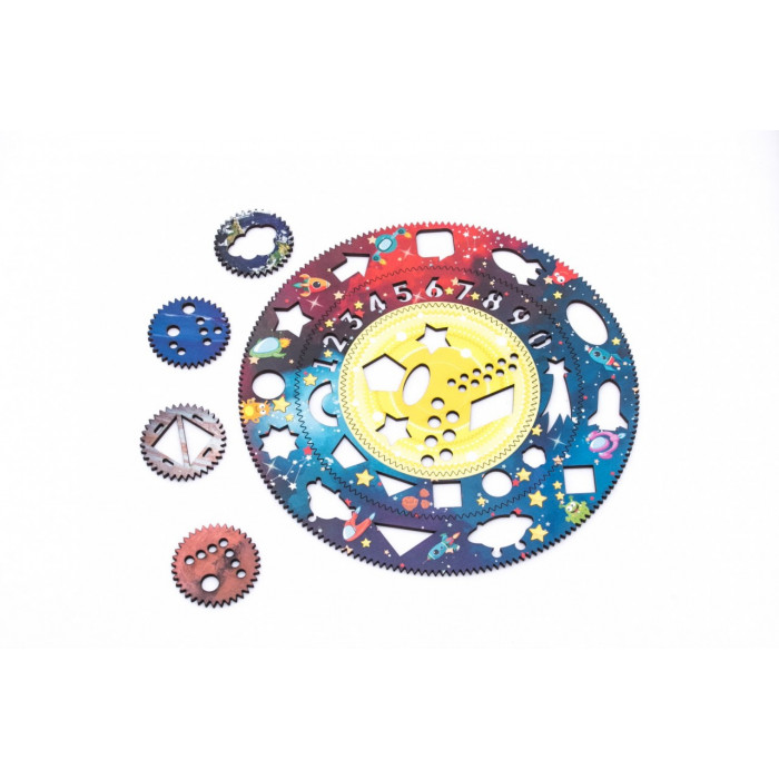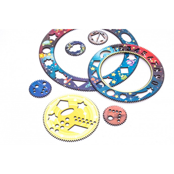 Спирограф - многофункциональная высокоинтеллектуальная деревянная развивающая игрушка для рисования. Это деревянная модификация популярной игрушки. Спирограф имеет яркое оформление с тематическими изображениями, состоит из 2 зубчатых колес с фигурными трафаретами для рисования и 5 кругов-шестеренок.