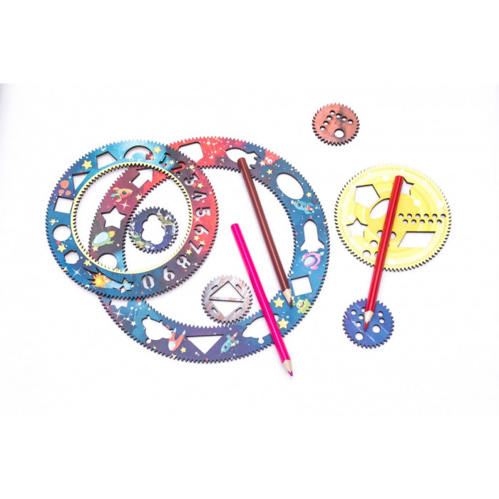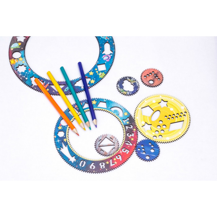 Деревянный Спирограф благотворно влияет на формирование творческих способностей малыша, и, несомненно, станет любимой игрушкой юного художника.