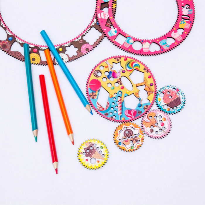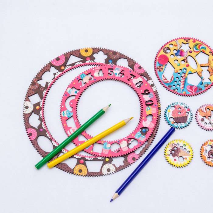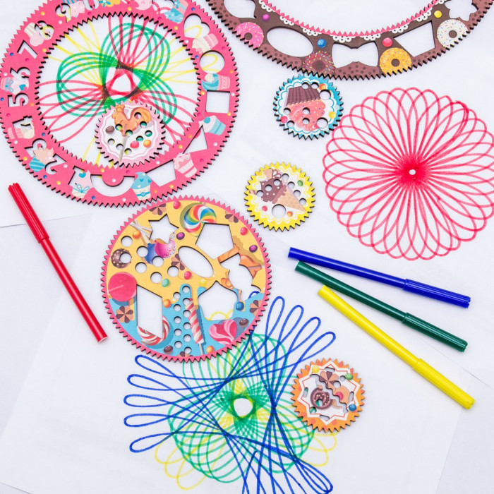 Деревянный Спирограф благотворно влияет на формирование творческих способностей малыша, и, несомненно, станет любимой игрушкой юного художника.