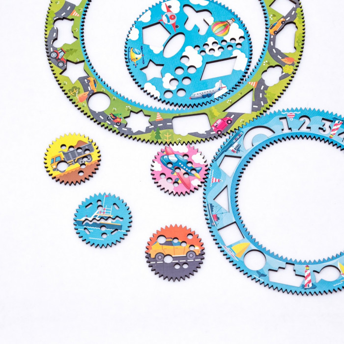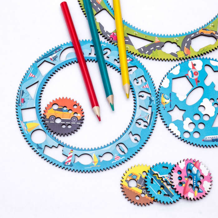 Деревянный Спирограф благотворно влияет на формирование творческих способностей малыша, и, несомненно, станет любимой игрушкой юного художника.