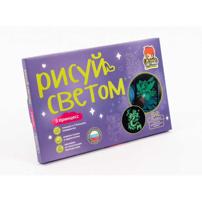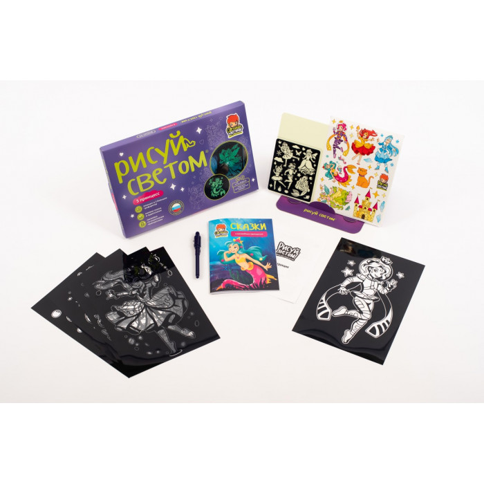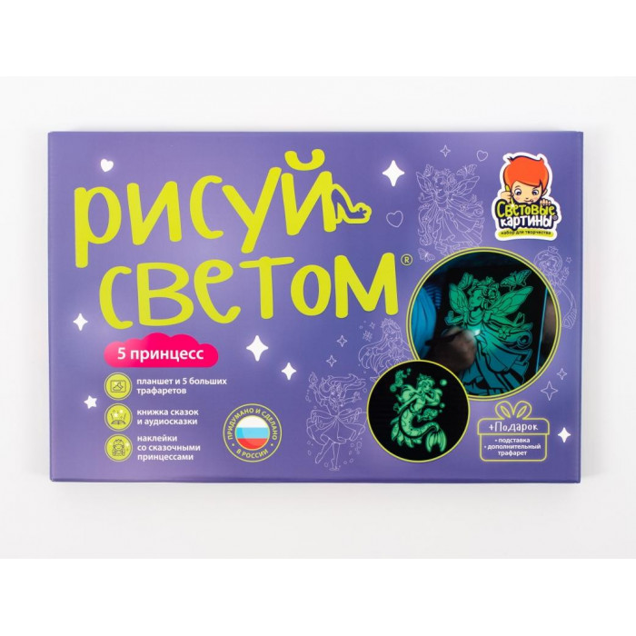 "5 принцесс" — новый набор для рисования светом для маленьких принцесс. В этом наборе, как и во всех тематических наборах "Рисуй светом", собрана целая коллекция детских развлечений.